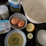 Topfen, Milch, Eier, Öl, Zucker, Vanillepaste + Vanillezucker und Topfengewürzmischung sowie den Abrieb einer Zitrone zu einer glatten Masse verrühren. Mehl mit Backpulver mischen und zur Topfen masse geben und zu einem glatten Teig verarbeiten (evtl. etwas Mehl zugeben, falls der Teig zu klebrig sein sollte).